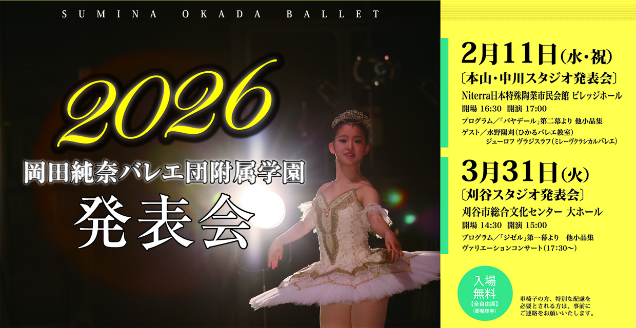 | 後援 | 中日新聞社・岡田純奈バレエ団附属学園後援会 |