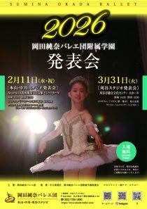 Sumina Okada Ballet Company Performance 公演情報 最新の公演情報から、過去の公演履歴をご紹介いたします。 最新公演 定期公演履歴 サマーコンサート履歴 発表会履歴 巡回劇場・その他の公演履歴 見学・体験レッスンのご予約、お問い合わせ Tel.052-788-1880 Recital History 発表会履歴 2026岡田純奈バレエ団附属学園発表会 2025年岡田純奈バレエ団附属学園本山・中川スタジオ発表会 2025年岡田純奈バレエ団附属学園刈谷スタジオ発表会 2024年岡田純奈バレエ団附属学園発表会 2023年岡田純奈バレエ団附属学園発表会 2021年岡田純奈バレエ団附属学園発表会 2020年岡田純奈バレエ団附属学園発表会 2019岡田純奈バレエ団附属学園発表会 2018スプリングコンサート・発表会 2017岡田純奈バレエ団附属学園発表会 2016岡田純奈バレエ団附属学園発表会 2015岡田純奈バレエ団附属学園発表会 「白雪姫」 他小品集